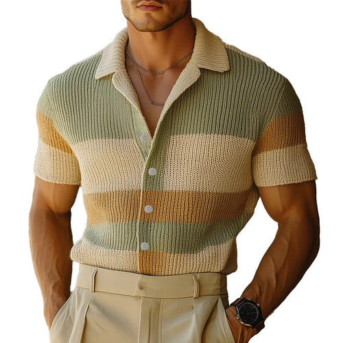 Men's Solid Color Knit Lapel Short Sleeve Casual Shirt